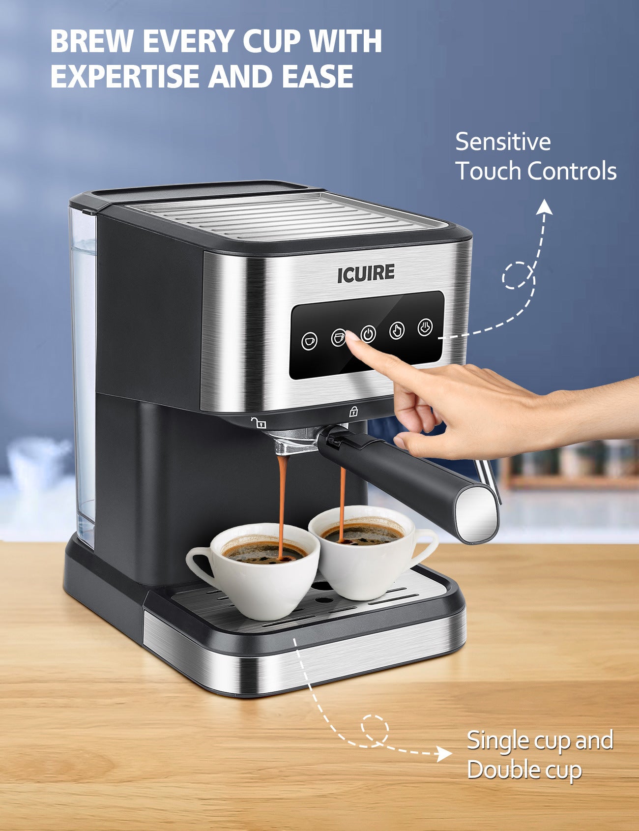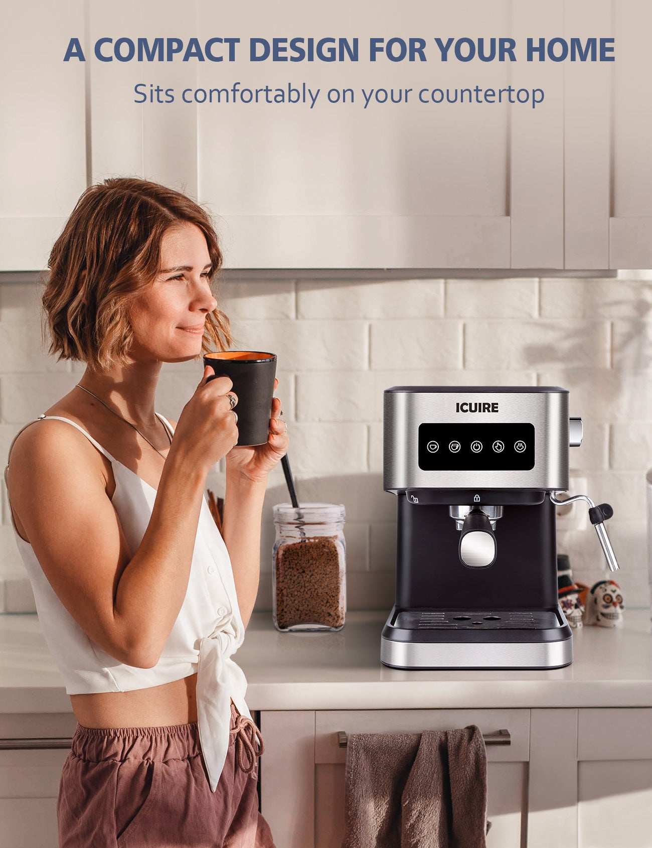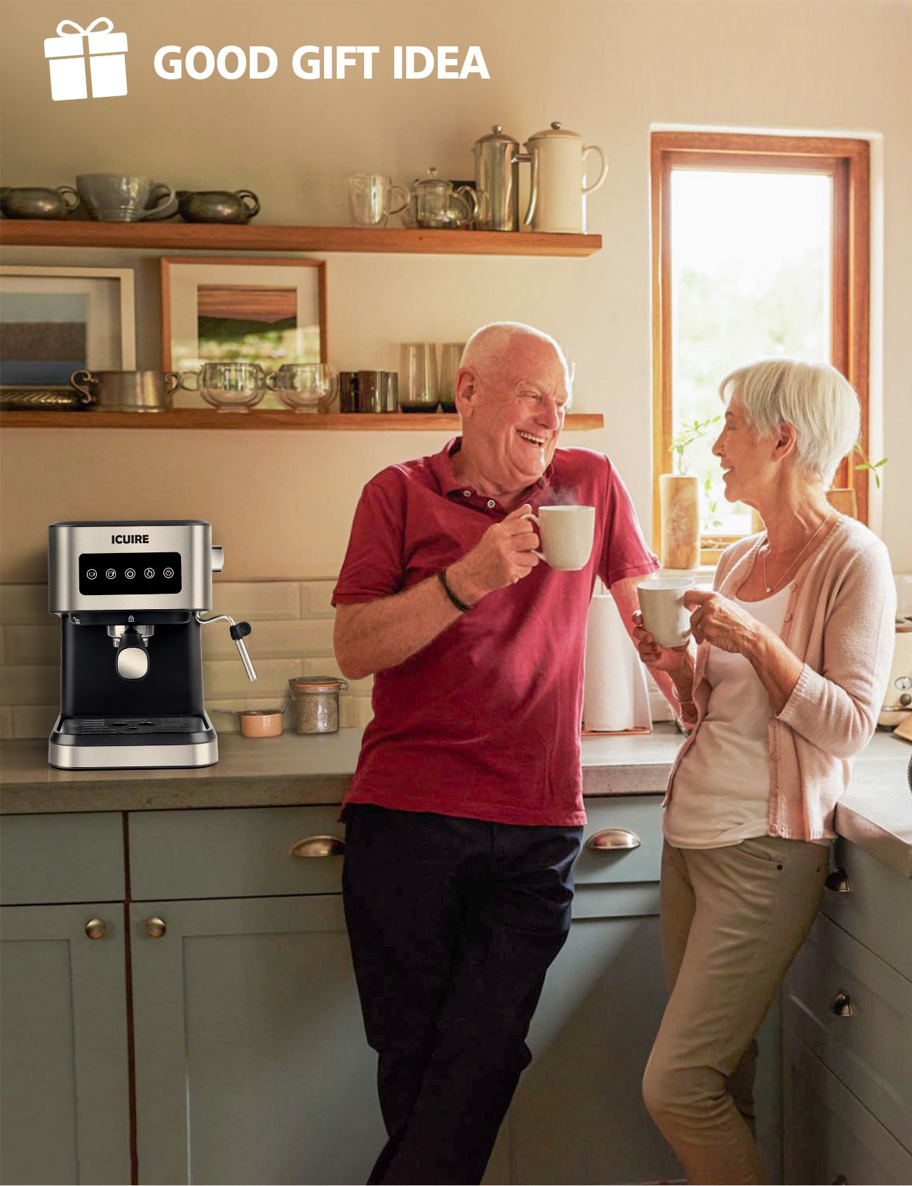 20 Bar Professional Pump & Barista-brewed Flavor--- Semi-Automatic Coffee Machine, 20 bar professional Italian pump, 1050W powerful pressure to extract rich crema and foams creamy milk in short time.